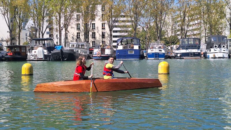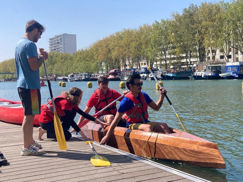 Le test de mise à l'eau du canoë s'est déroulé sur la base nautique de La Villette, grâce à la complicité de l'équipe et de la Direction Jeunesse et Sports de la Ville de Paris.